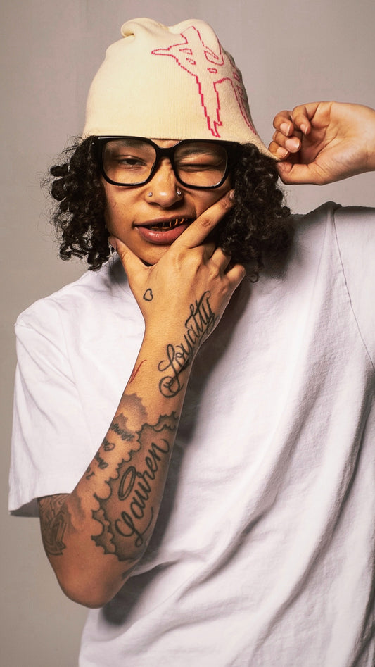 Cream Double logo beanie
